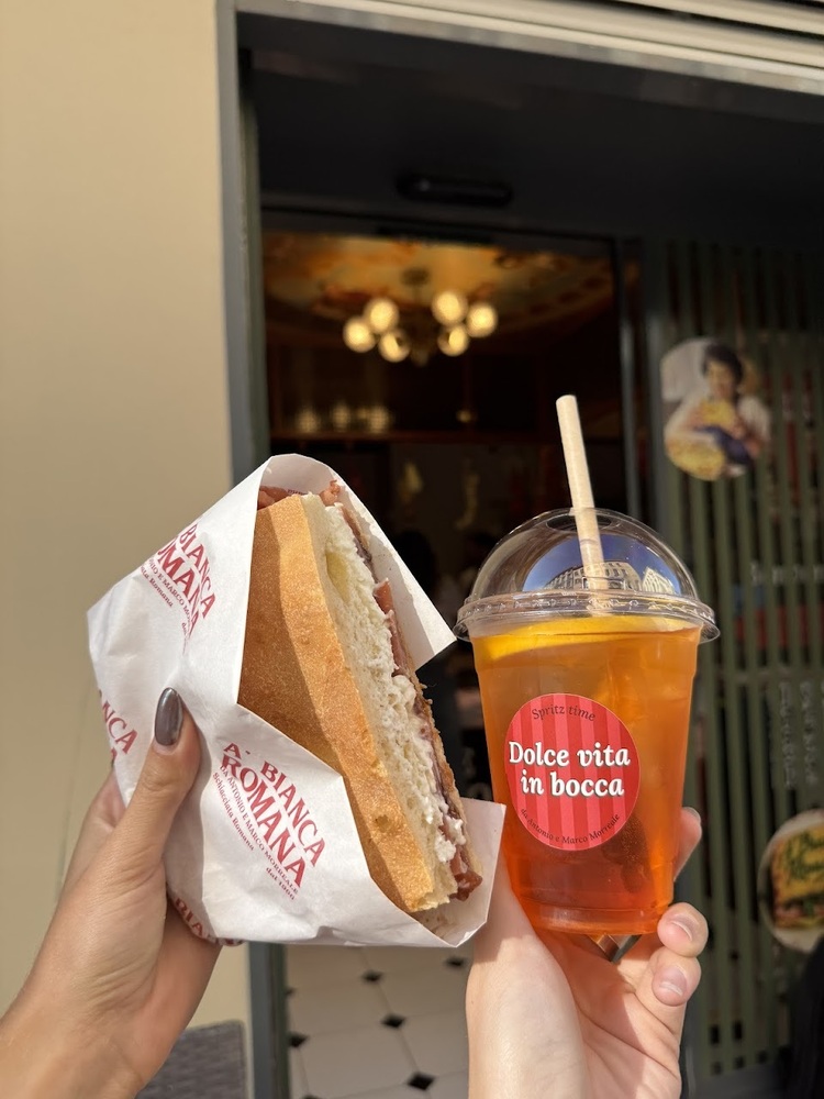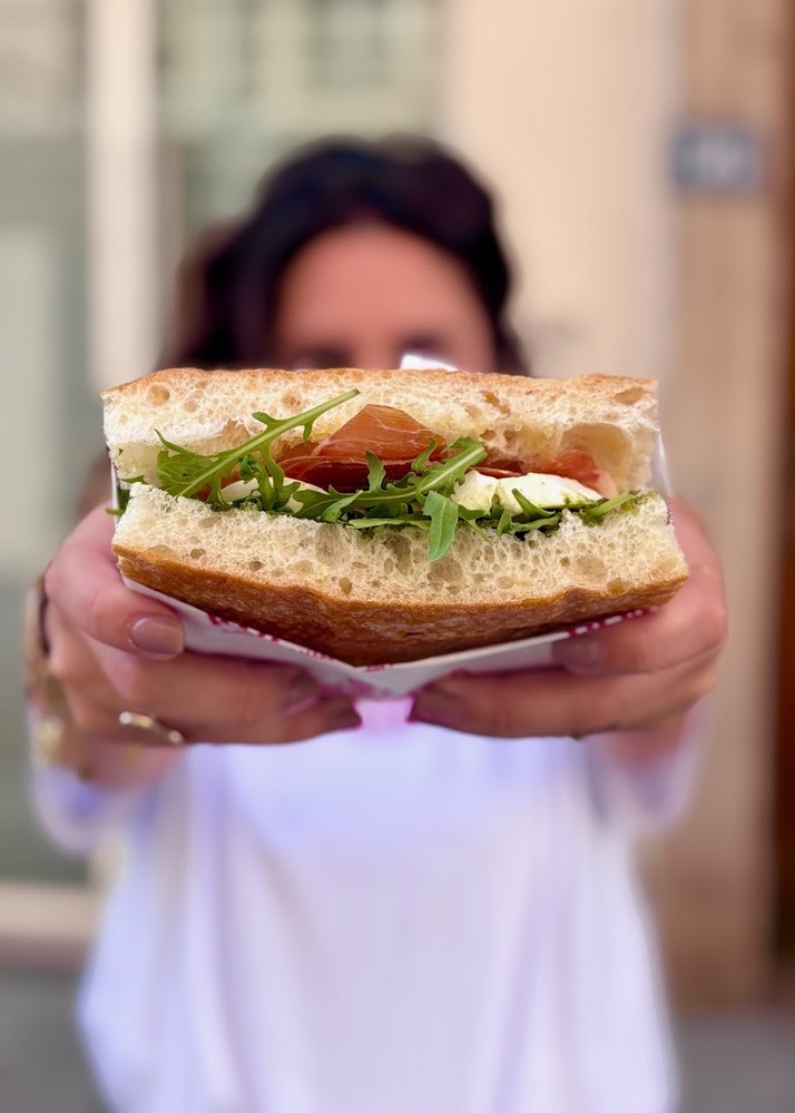 Mais qu’est-ce que c’est que cette folie croustillante ? Une focaccia fine, croccante e gourmande, dorée comme un coucher de soleil sur le Trastevere, généreusement farcie d’ingrédients freschi e savoureux, comme seuls les vrais italiens savent le faire. C’est simple : chaque bouchée vous transporte direct sous le ciel de Rome, scooter vrombissant et espresso à la main. Et ce n’est pas tout, amici ! On retrouve aussi les iconiques pizze alla taglia, ces parts de pizza généreuses, moelleuses ou croustillantes, prêtes à être dévorées sur le pouce ou en bonne compagnie. C’est la rue qui devient trattoria, c’est le goût qui prend le pouvoir, c’est la streetfood façon Roma !